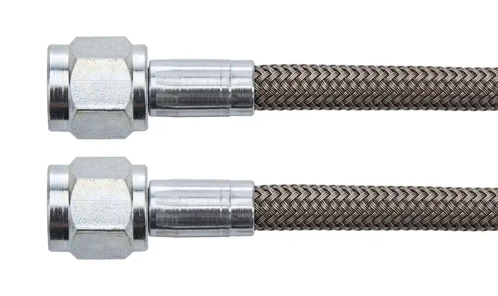 AN Hose Assembly – Endura – 13 in Long – 3 AN Hose – 3 AN Straight Female to 10 mm Banjo – DOT Approved – Braided Stainless – PTFE Lined – Each
